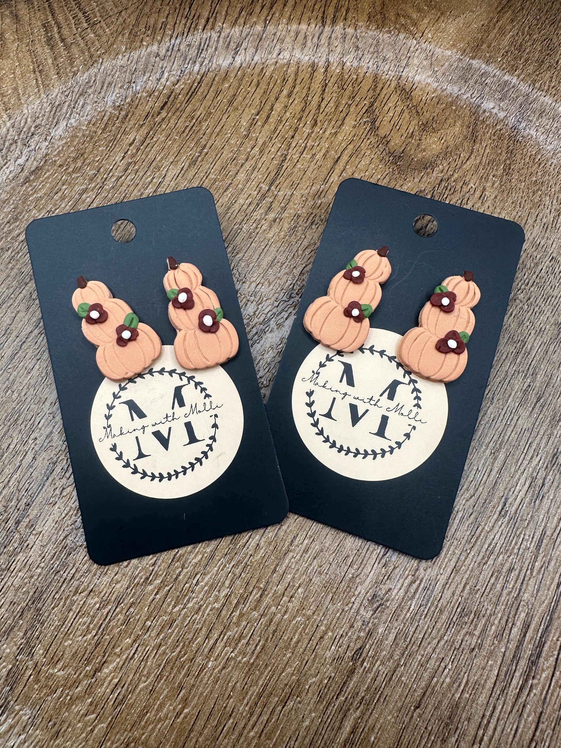 Stack Pumpkins with Maroon Flowers